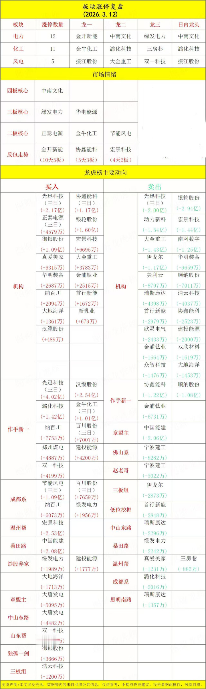 电力:龙头中南文化4板在,则后排里的思考就是绿发3板和华电3板,而核心中军的思考就是金开10天5板。但是持续性还是不好判断!