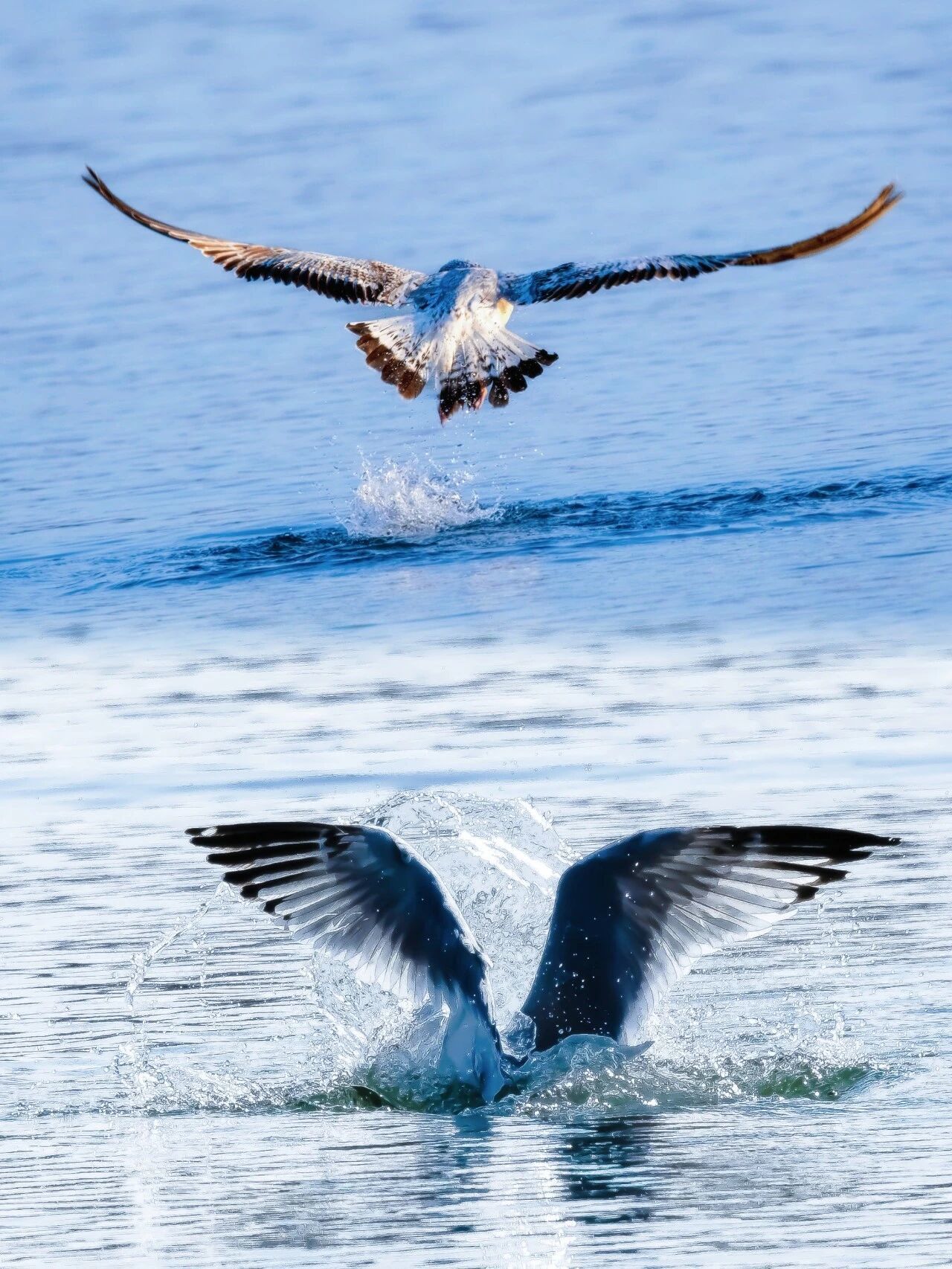 图13-14:近日,在潮白河顺义段,数百只银鸥翩翩飞舞,它们或在空中滑翔,或在水面觅食,或相互嬉戏打闹,生机勃勃,充满春天的力量。(图/北京日报)