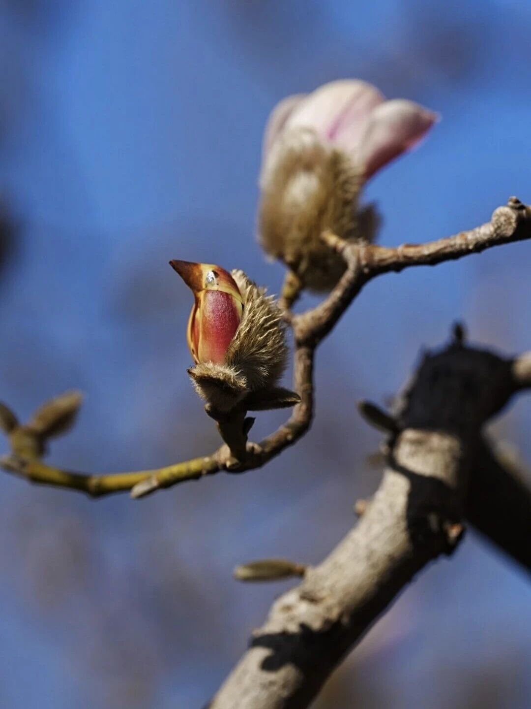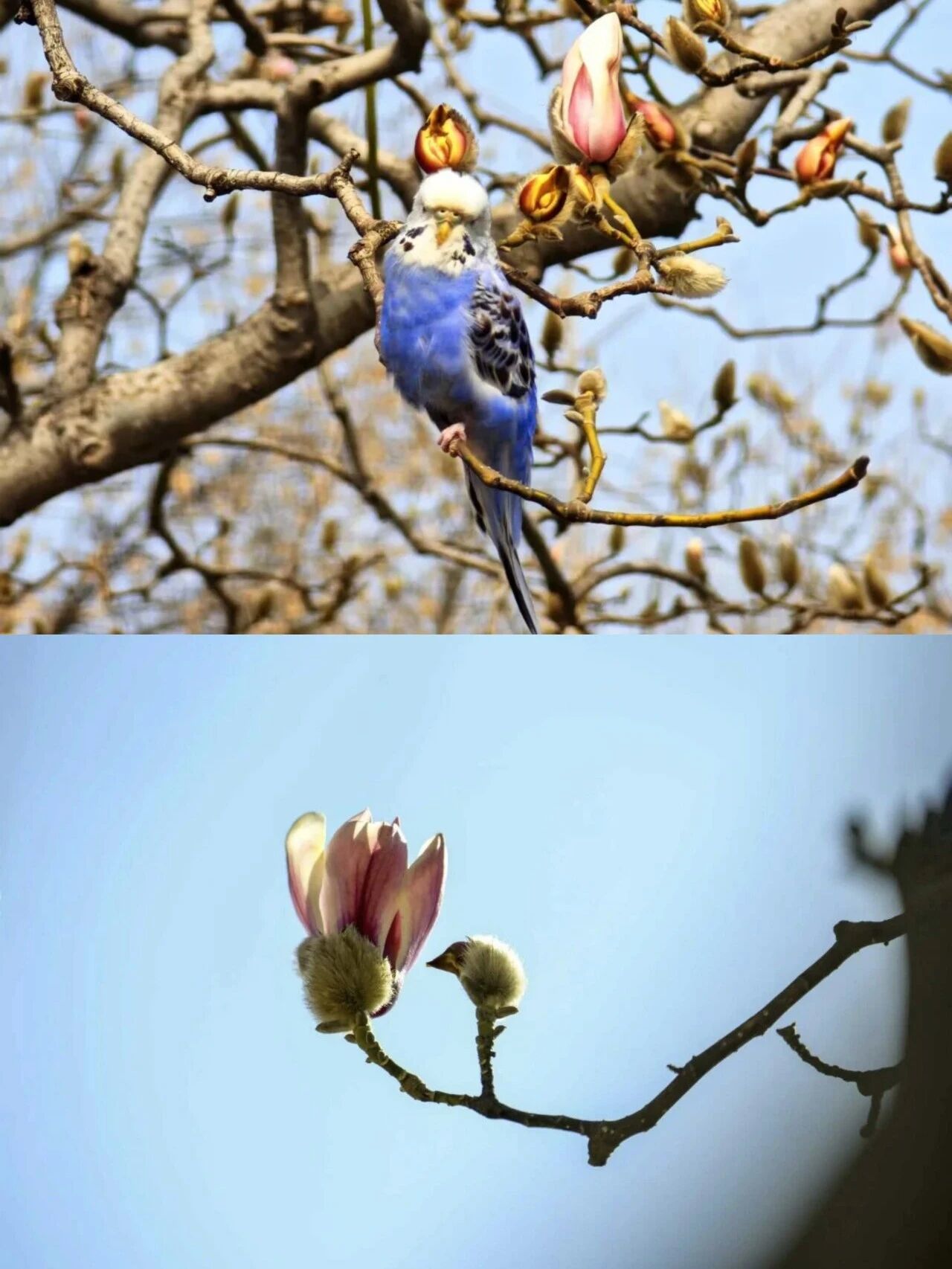 图5-6:伴随气温回升,京城春色渐浓,在北京国际雕塑公园里的千余株玉兰花,或含苞待放,或初露芳容,最受市民喜爱的就是那形似雏鸟的花苞,绒嫩的花瓣拢成小雀模样,静栖枝头。这里的玉兰数量最多、品种最全、颜色最美、花期最长,从3月中下旬到4月将次第开放。(图/北京石景山)